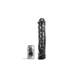 Questo dildo All Black ha un colore nero intenso e un'impugnatura dalla forma realistica con venature spesse sull'asta.